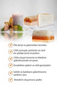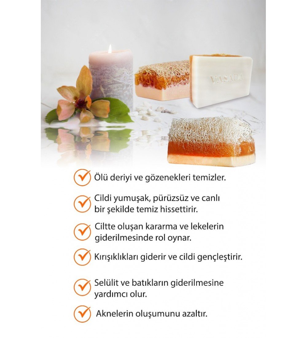 Sabun üzerinde bulunan kabak lifi sayesinde arındırıcı ve besleyici peeling
