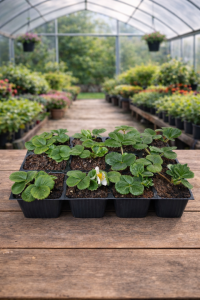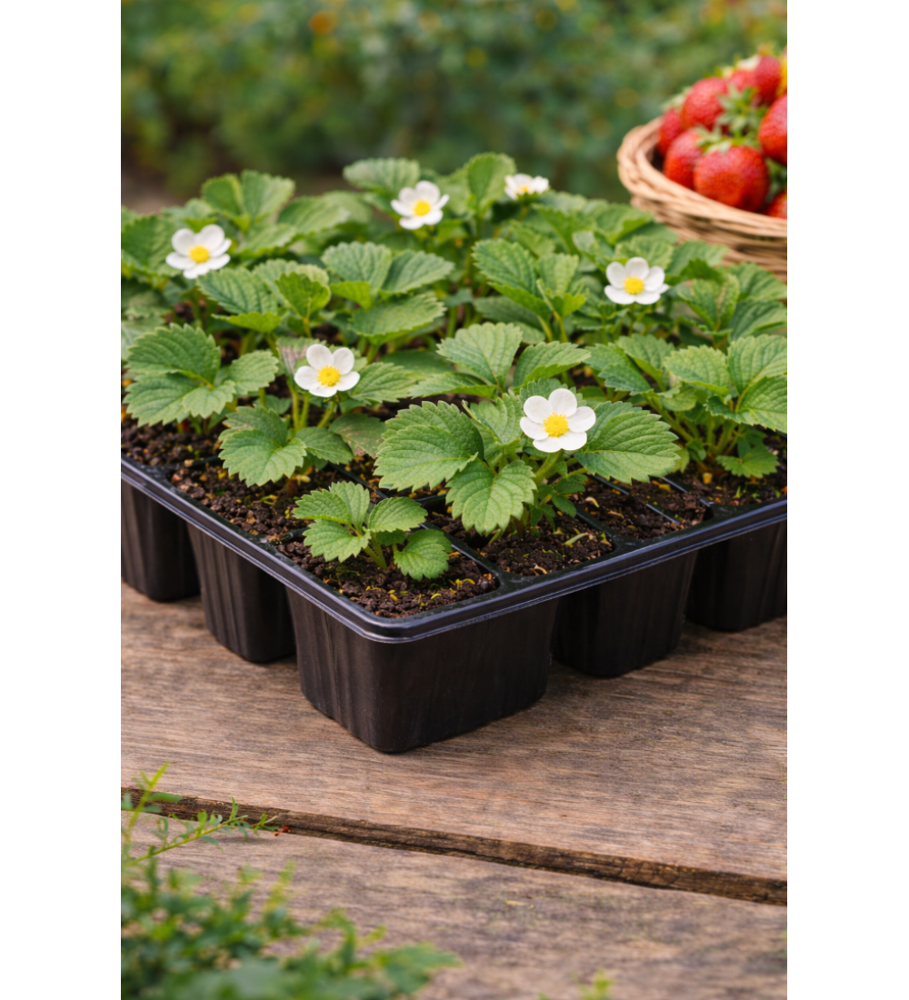 Vasada 12 Adet Monterey Çilek Fidesi Yediveren 6x5,5 cm Viyolde Dikime Hazır