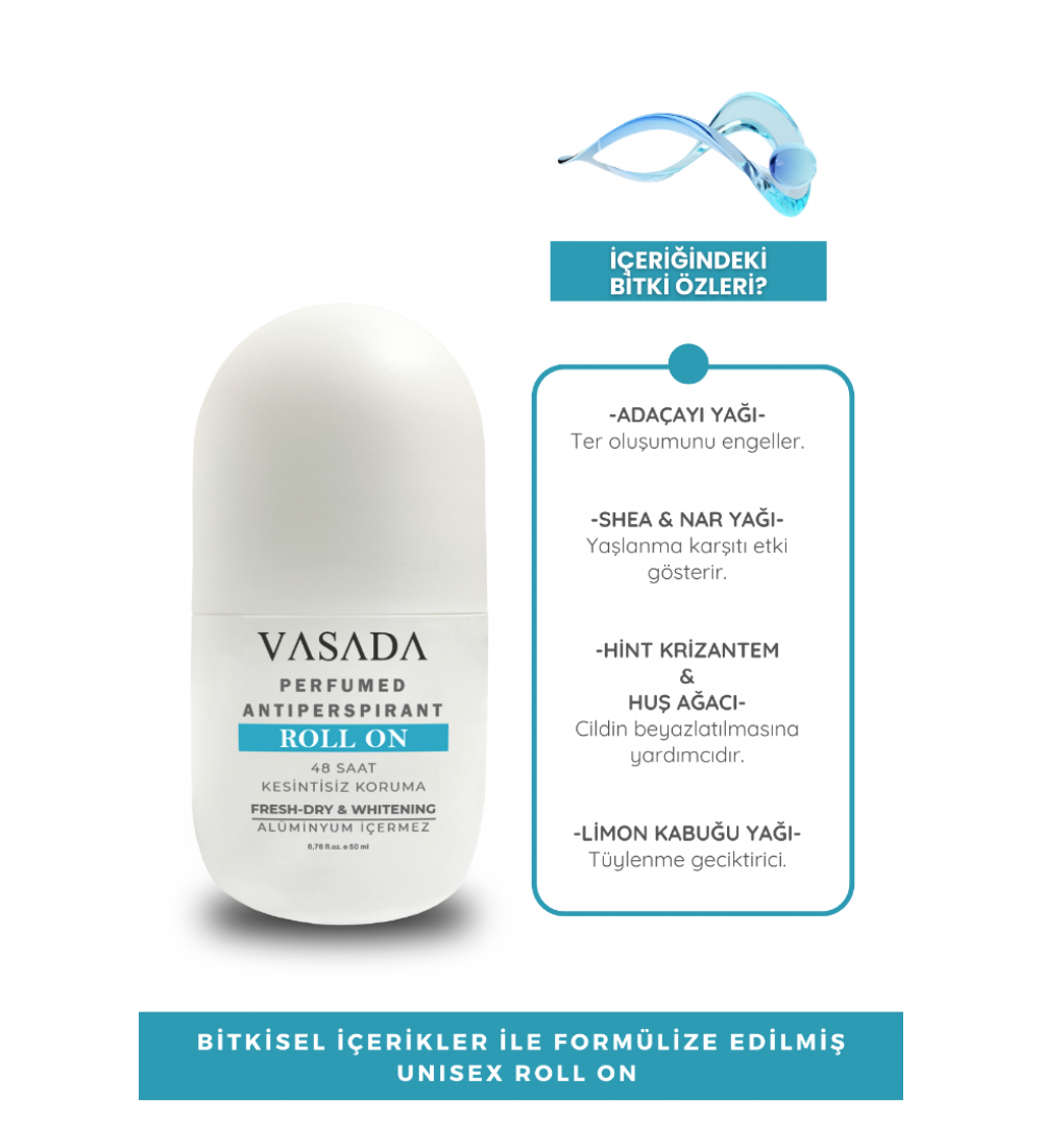El, ayak ve koltuk altı terlemelerini önlemeye yardımcı olur. İçeriğindeki adaçayı yağı ile ter oluşumunun engellenmesine destek sağlar. Shea ve nar yağının doğal etkisi ile yaşlanma karşıtı etki gösterir. Hint krizantem ve huş ağacı özleriyle cildin beyazlatılmasına katkı sağlar. Alüminyum içermeyen yapısı sayesinde terleme ve terlemeyle ortaya çıkan kötü kokuyu cildinize zarar vermeden önler. Gözeneklerinizi tıkamaz, cilt hücrelerinize zarar vermez; 48 saate kadar etki gösterir. Daha iyi bir sonuç almak için gün içerisinde roll-on kullanımını yenileyebilirsiniz. Özel bileşenleri sayesinde kıyafetlerde leke bırakmaz. Roll-on kullanımından sonra siyah ya da beyaz kıyafetleri rahatlıkla tercih edebilirsiniz. Kullanım sonrası hızlı kuruma gösterir. Cildinizde yapışıklık ve beyazlık bırakmaz. İçeriğindeki arbutin sayesinde düzenli kullanımda ciltteki kararmaların azalmasına yardımcı olur. Akdeniz notalarında yankılanan yaz kokusu ferahlığıyla fark yaratın. Yeterli miktarda ürünü cildinize uygulayınız ve nazikçe yediriniz. Durulama gerektirmez.